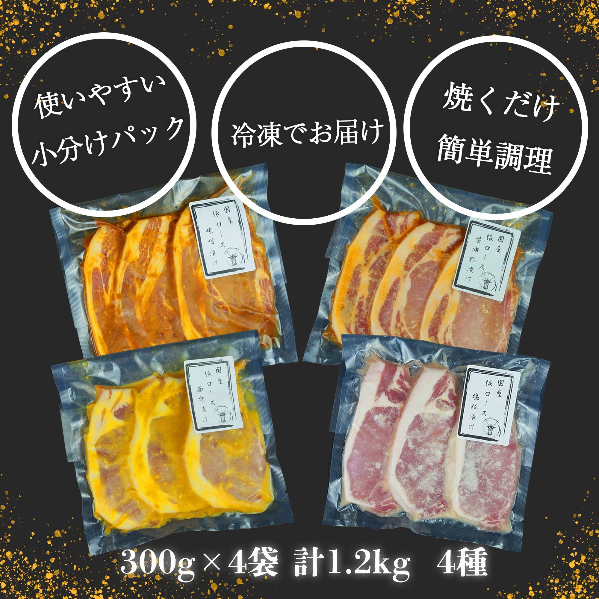 豚肉 ロース 1.2kg 12枚 各 4パック 西京漬け 味噌漬け 塩糀漬け 醤油麹漬け 国産 小分け ソテー 古安