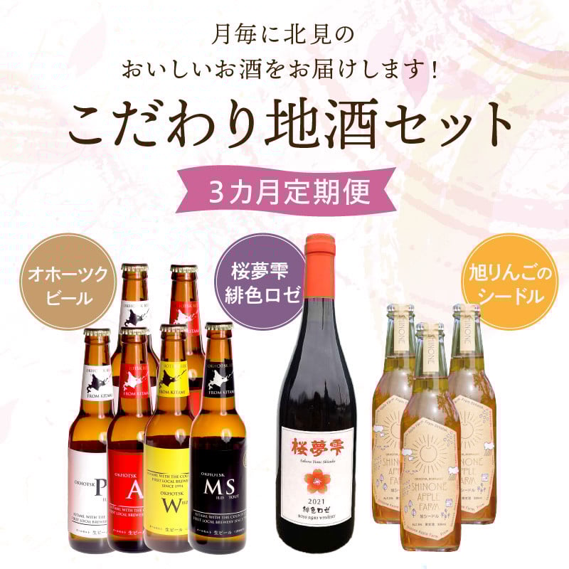 - 【3ヶ月定期便】こだわり地酒セット ( お酒 酒 地酒 ビール 地ビール ワイン ロゼワイン りんご 旭りんご シードル )【999-0271】