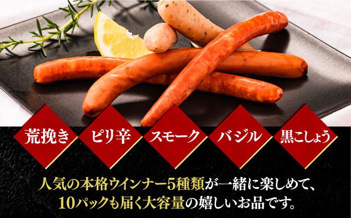 - ウインナー アソート 5種 × 10パック ( 荒挽き / スモーク / ピリ辛 / バジル / 黒こしょう)《豊前市》【みやこハム】 [VAN002] 肉 ソーセージ 大容量 盛り合わせ BBQ あらびき 粗挽き