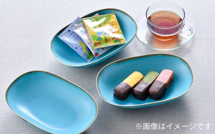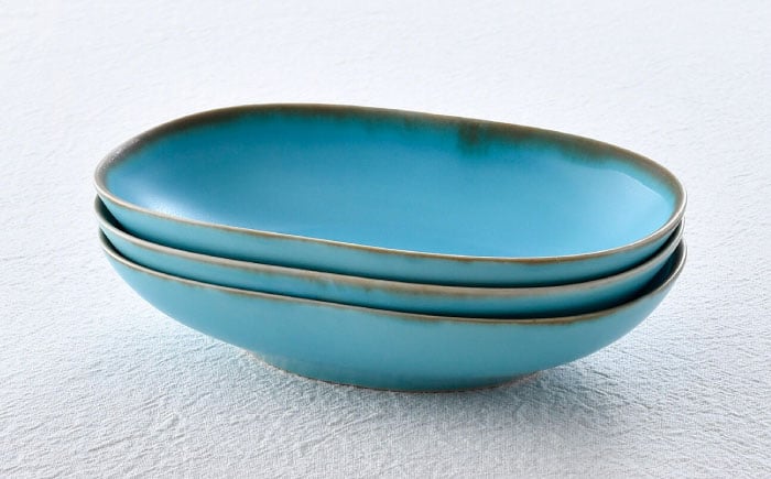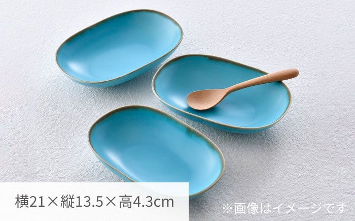 - 【波佐見焼】オーバルボウル 渕錆ターコイズブルー 3枚セット【長十郎窯】 [AE110]