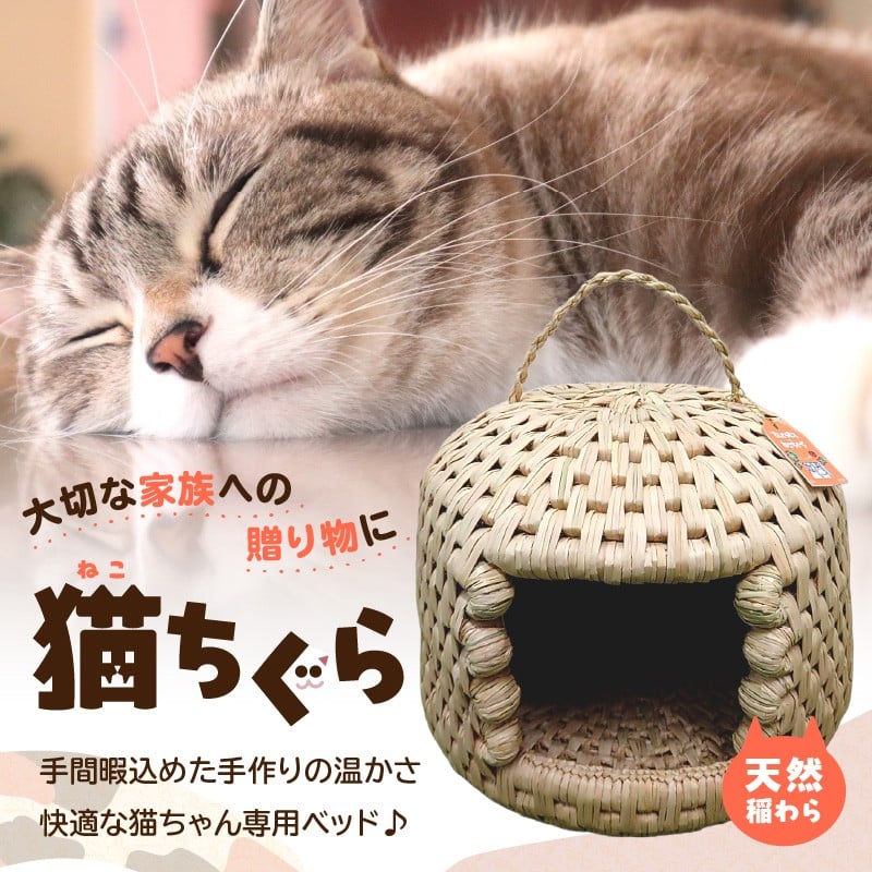 - 天然稲わら 猫ちぐら キャットハウス 猫グッズ インテリア 手作り 天然稲わら ふかふかベッド 大分産 おしゃれ くつろぎ ペット用品 U04001