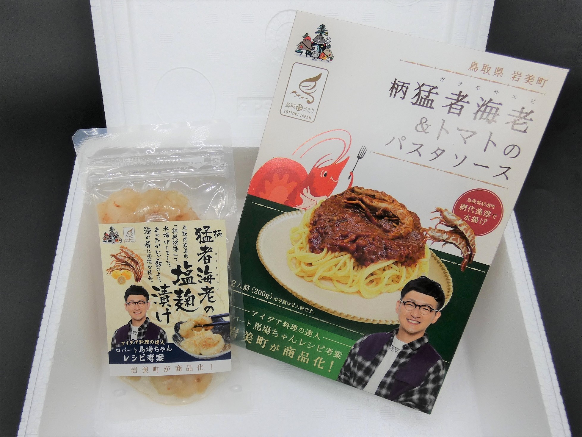 - ロバート馬場ちゃん考案レシピ 柄猛者海老の「パスタソース」1箱「塩麹づけ」1袋|えび エビ パスタ 塩こうじ 鳥取 岩美 もさえび【53028】