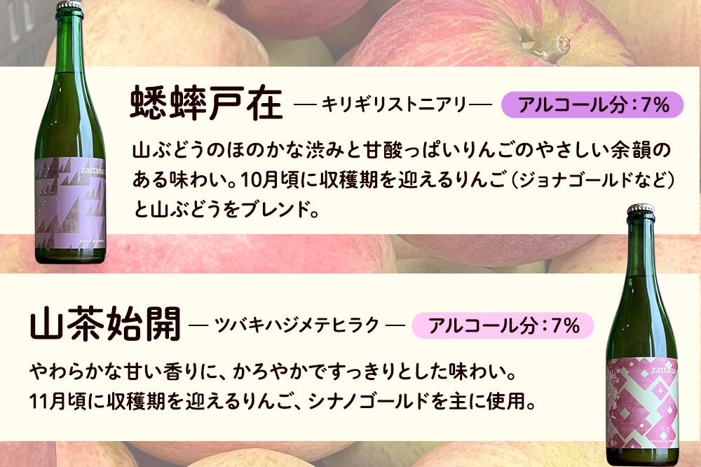 - シードル zattana cidre 2本 セット(蟋蟀戸在&山茶始開) [シードル スパークリングワイン セット ひろさき 果実 果物 りんご りんご酒 弘前 酒 青森 発泡ワイン おいしい 美味 林檎酒]