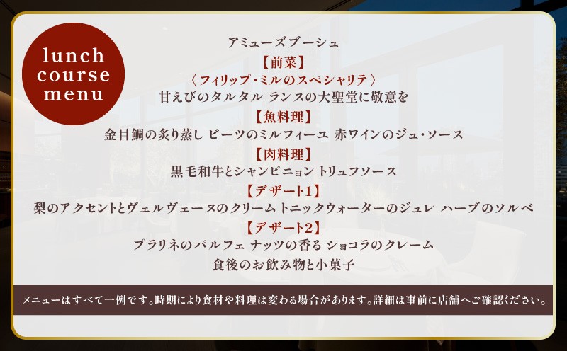 - 【フィリップ・ミル 東京】ふるさと納税 ランチコース 1~2名様