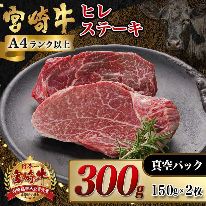 【ふるさと納税】《レビューキャンペーン実施中!》宮崎牛ヒレステーキ(150g×2枚) - 宮崎県産宮崎牛 ヒレ ステーキ用カット 約150g×2枚 塩こしょう・ステーキソース付 牛肉 牛ヒレ 真空パック 送料無料 AC-N4-003【宮崎県都城市は2年連続ふるさと納税日本一!】