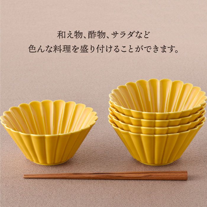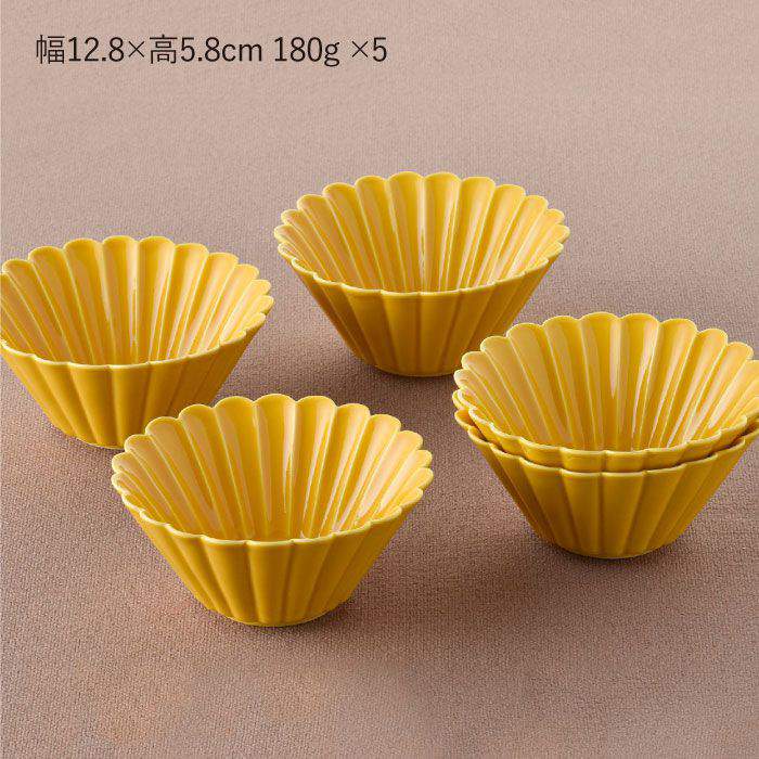 - 【ふるさと納税】【波佐見焼】菊型 中鉢 ボウル 5点セット(黄) 食器 皿 【洸琳窯】 [GE25]