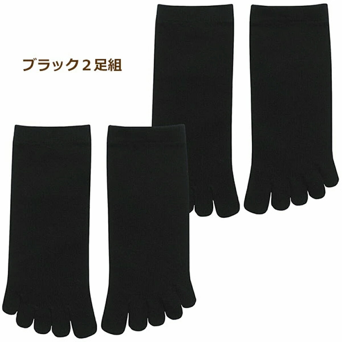 【ふるさと納税】 靴下 日本製 5本指 五本指 ソックス レディース ロークルー丈 2足 セット 表糸綿100% 平編み 無地 23~25cm 女性 婦人 五本指靴下 くつした くつ下 2足組 シンプル ホワイト ブラック 足