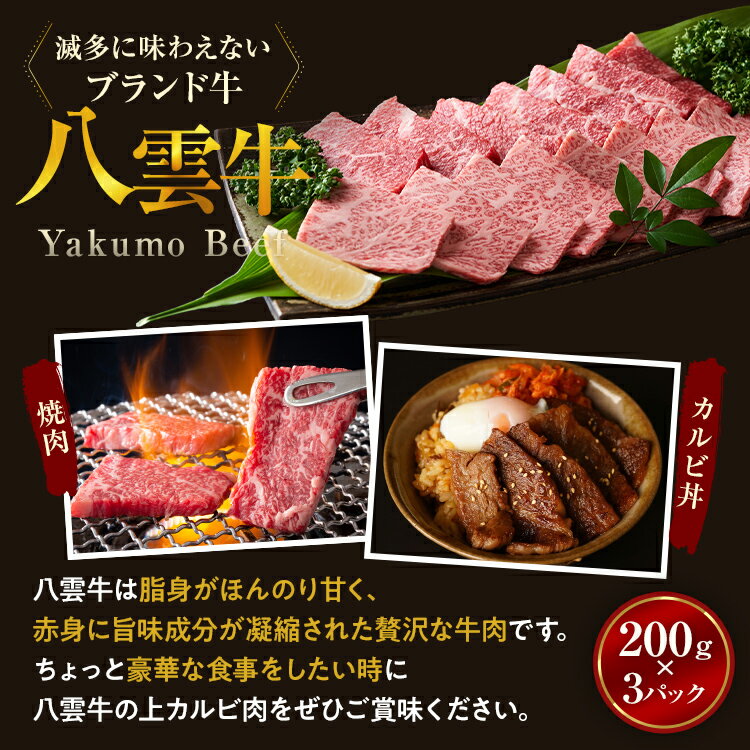 - 【ふるさと納税】【北海道情報雑誌で紹介!】八雲牛 焼肉上カルビ 総重量600g (200g×3パック) ※沖縄・離島への配送不可
