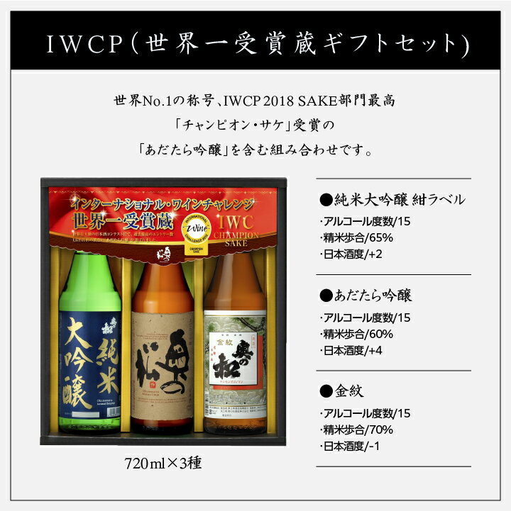 【ふるさと納税】 奥の松酒造「IWCP」720ml×3種 奥の松 日本酒 酒 セット アルコール 純米大吟醸 吟醸 酒造 酒蔵 さけ おすすめ お中元 お歳暮 ギフト 二本松市 ふくしま 福島県 送料無料 【道の駅「安達」智恵子の里】