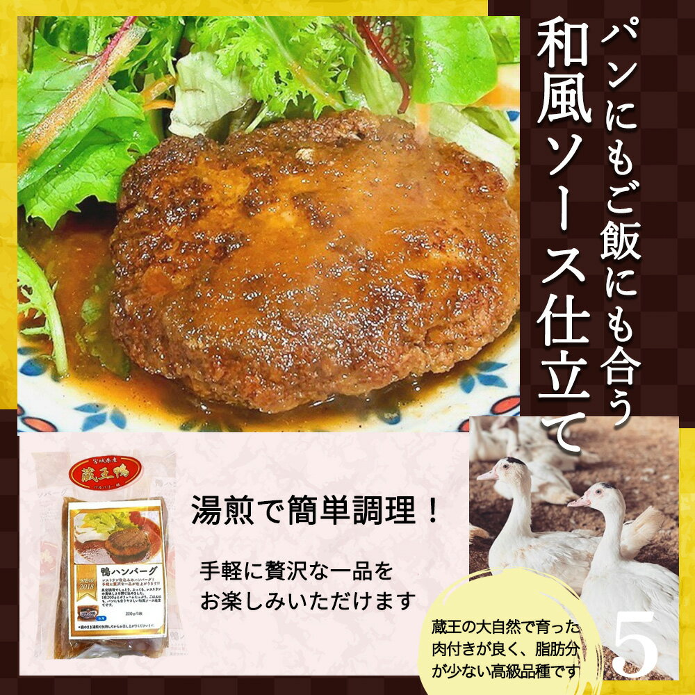 - 【ふるさと納税】蔵王本鴨 鴨ハンバーグ180g×5個(計900g) 【04301-0880】 鴨肉 本鴨 ハンバーグ 惣菜 小分け 手軽 贅沢 バイオファーム