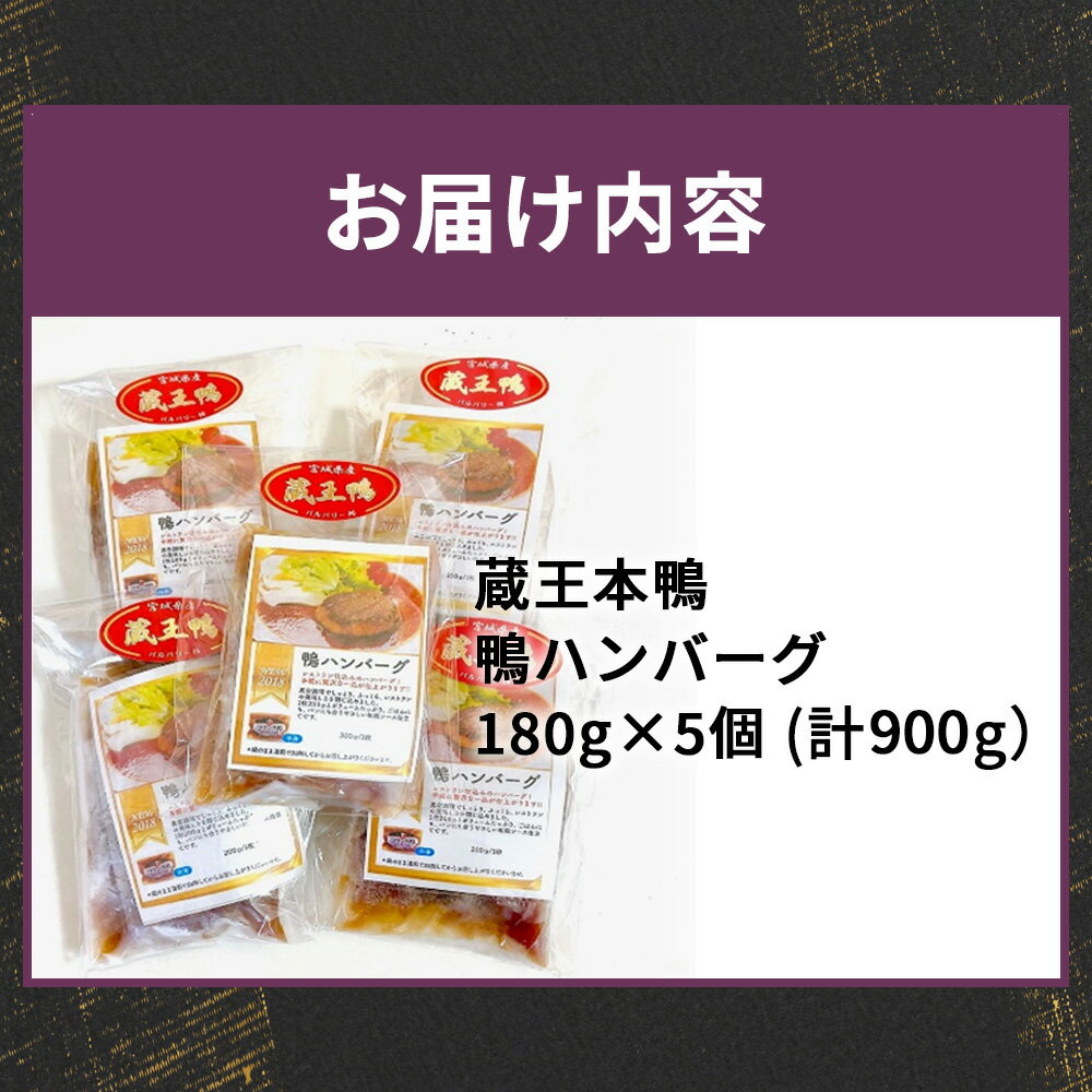 【ふるさと納税】蔵王本鴨 鴨ハンバーグ180g×5個(計900g) 【04301-0880】 鴨肉 本鴨 ハンバーグ 惣菜 小分け 手軽 贅沢 バイオファーム