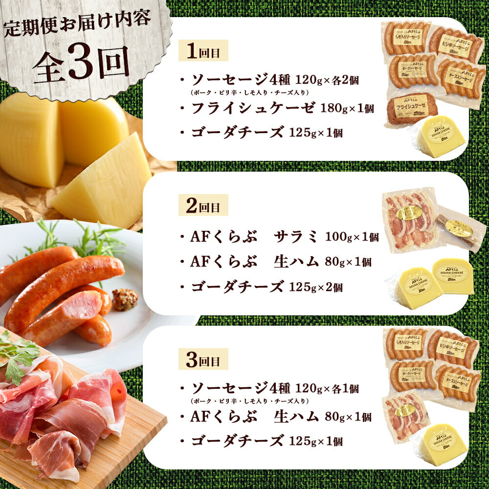 【ふるさと納税】【定期便:全3回】 | チーズ・ハム・ソーセージ 北海道 AFくらぶ 8種よくばりセット ゴーダチーズ ソーセージ 生ハム サラミ ピリ辛 しそ 豚 肉 乳製品 食べ比べ 定期便 3ヶ月 ふるさと納税 北海道 中標津町【1701301】
