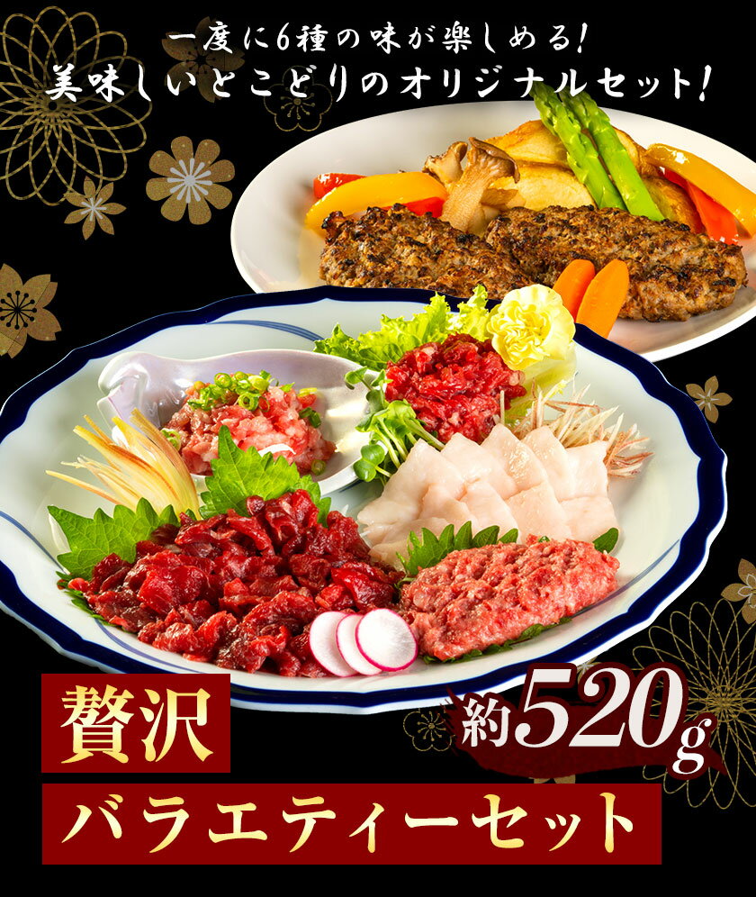 - 【ふるさと納税】贅沢バラエティセット 520g 馬肉 冷凍 《60日以内に出荷予定(土日祝除く)》 新鮮 さばきたて 生食用 肉 熊本県氷川町 馬刺し 馬肉 惣菜 希少部位