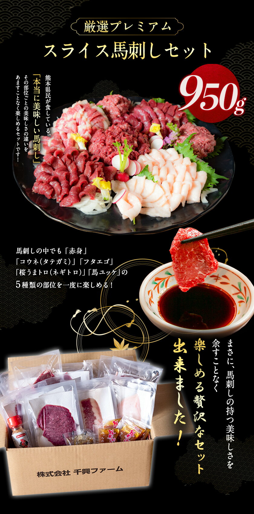 - 【ふるさと納税】厳選プレミアムスライス馬刺しセット 950g 馬肉 冷凍 《60日以内に出荷予定(土日祝除く)》 新鮮 さばきたて 真空パック 生食用 肉 熊本県大津町 スライス 特産品