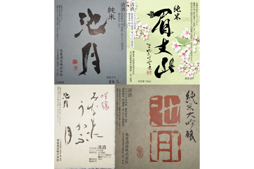 - 【ふるさと納税】 【鳥屋酒造】 日本酒 飲み比べ4本セット(純米大吟醸池月 純米池月 眉丈山 みなもにうかぶ月 ) [道の駅織姫の里なかのと 石川県 中能登町 nk17amw270065] 日本酒 飲み比べ 飲み比べセット お酒 酒 純米酒 純米 大吟醸 セット 地酒 おさけ 能登