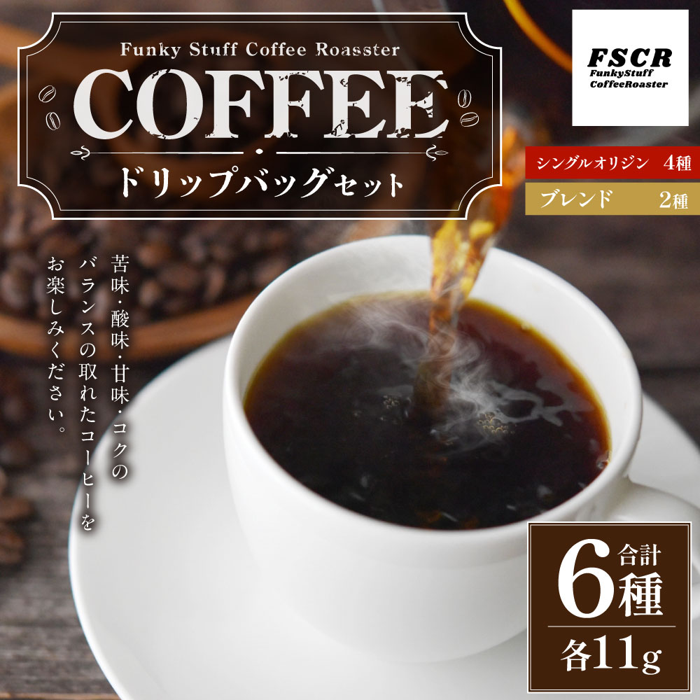 - 【ふるさと納税】コーヒードリップバッグセット 6種 計66g(11g×6個) 各1個 シングルオリジン 4種 ブレンド 2種 コーヒー 珈琲 ドリップパック ドリップバッグ 飲料 ドリンク セット 詰め合わせ 茨城県 神栖市 送料無料