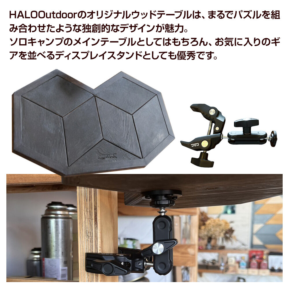【ふるさと納税】オリジナル ウッド テーブル [木製テーブル ウッド素材 ディスプレイ スタンド インテリア 幾何学模様 ソロキャンプ HALOOutdoor]