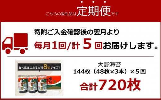 - 【定期便 全5回】一番人気 大野海苔(3本) ギフト箱入 計15本|海苔 のり 味付のり 味のり 卓上のり 味付け%%海苔 味付けのり 焼き海苔 人気 おすすめ