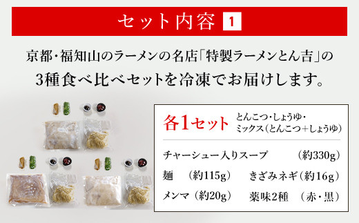 - 特製ラーメンとん吉 3種食べ比べ (とんこつ、しょうゆ、ミックス)&復刻牛丼セット (各1食分)【fc-DD004】【京都福知山 特製ラーメンとん吉】
