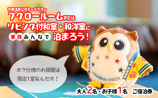 ホテル ファミリー向け宿泊券 (フクロー) 1泊 大人2名・お子様1名 花巻温泉 【1912】