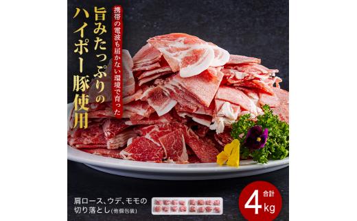 - 豚肉 阿武町産 豚 切り落とし 4kgセット | 携帯の電波も届かない環境で育った旨みたっぷりのハイポー豚 豚 肉 お肉 ※配送不可:離島