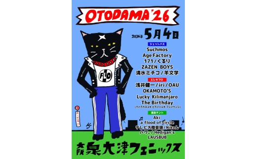 - 【5/5(火・祝)/XLサイズ/ブラック(D-3)】OTODAMA'26 1日券(大人) 1枚 オフィシャル Tシャツ 引換券付き | チケット フェス 音楽フェス ロックフェス ロック GW ゴールデンウィーク 春フェス アウトドア 音楽 大阪府 泉大津市 フェニックス ※北海道・沖縄・離島への配送不可