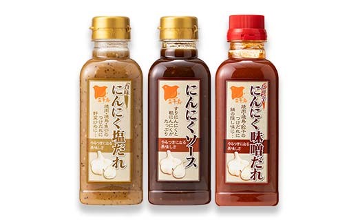 - 北陽千鳥ソース にんにくだれ 3種9本セット(香味にんにく塩だれ320g×3・にんにくソース300ml×3・ピリ辛にんにく味噌だれ360g×3) 調味料 万能調味料 たれ つけだれ 大蒜 にんにく ニンニク 焼肉 肉 野菜炒め 自宅用 家庭用 栃木県 足利市 F7Z-1916