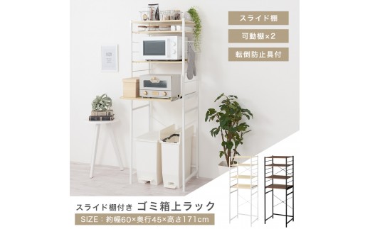 【完成品+設置付き】スライド棚付きゴミ箱上ラック〔幅60cm〕(ウォールナット)ゴミ箱上ラック レンジ台 キッチンラック ゴミ箱上収納 スライド棚 レンジラック レンジ 収納 炊飯器 ラック スリム KKONRA945066-0-WAL