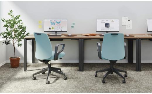 - コクヨオフィスチェアー エルア C02-B101CU-BKET7T72 ロータイプ・肘無・黒樹脂脚・本体黒・布(ネイビー)・ポリウレタン巻キャスター/在宅ワーク・テレワークにお勧めの椅子