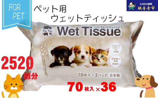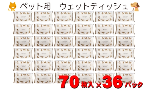 なめても安心♪ ペット用 ウエットティッシュ 70枚×36個入 (2520枚)〈KA-202〉