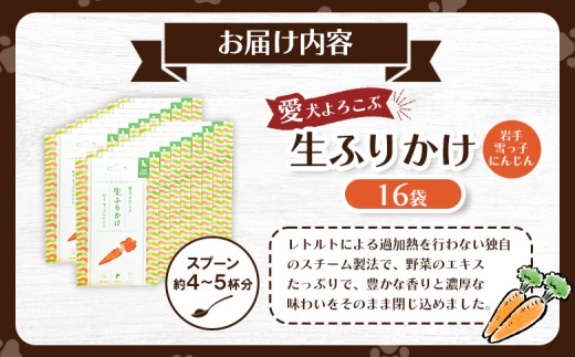 【先行予約】【愛犬よろこぶ生ふりかけ】岩手 雪っ子にんじん 80g×16袋 | 生ふりかけ 新開発 雪っ子にんじん トッピング ペットフード 愛犬 混ぜるだけ 素材の味 栄養バランス 野菜エキス 濃厚 食欲 食いつき 常温 獣医師監修 栄養士監修 かわいいパッケージ 耐熱 耐冷 パウチ レトルト スチール製法 東北 お取り寄せ ワンストップ マイページ 宮城県 白石市 白石【500011】