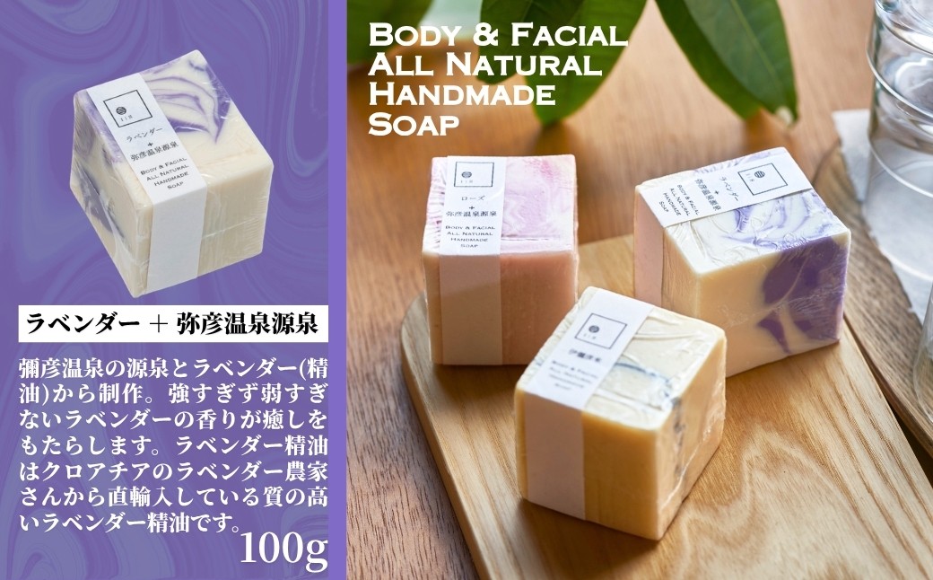弥彦からの恵み自然派石鹸 100g×3種類 固形 せっけん | 新潟県 弥彦村 (伊彌彦米石鹸・弥彦温泉&ローズ・弥彦温泉&ラベンダー)