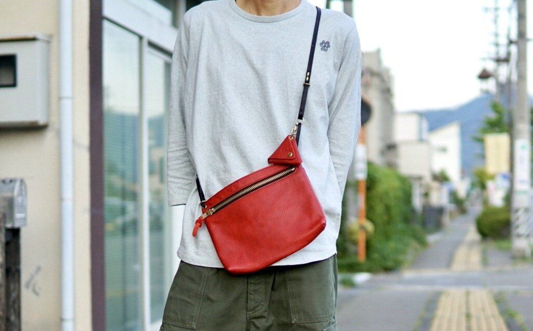 - サコッシュ 信州鹿革 DSH-210 /レッド| レザーサコッシュ 鹿革ショルダーバッグ 千曲市 長野県産 信州