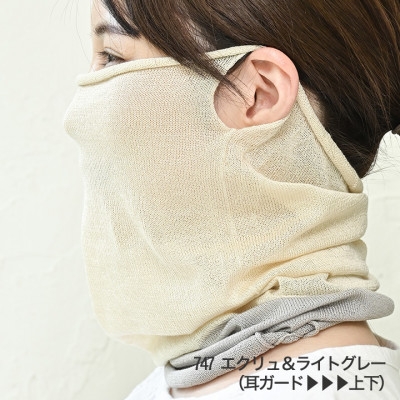 - 日本製 シルク100% スヌード 耳穴付4穴 <エクリュ&ライトグレー> (743-7762)【1618111】