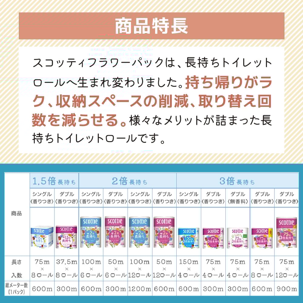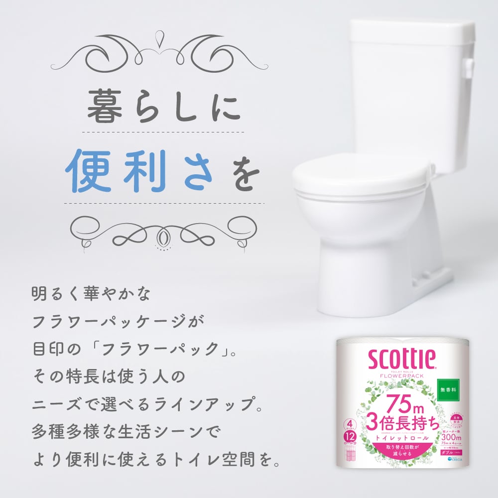 トイレットペーパー ダブル スコッティ 3倍長持ち 24ロール ( 4ロール × 6パック ) フラワーパック 無香料[№5704-0888]