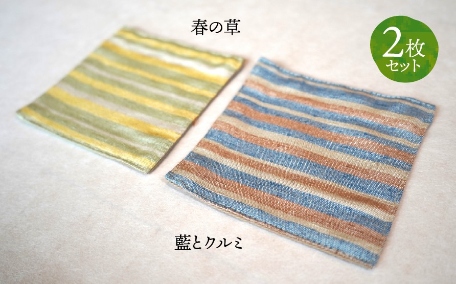 - 【草木染】紬織り コースター i (黄色:春の草)(青色:藍とクルミ) 2枚セット|伝統 工芸 手織り 天然染料 小物 雑貨 丁寧な暮らし ティータイム 一点もの ハンドメイド サステナブル ギフト 贈り物 お祝い 土曜日の月
