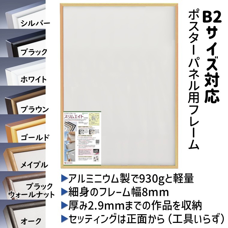- ポスターフレーム スリムエイト B2 フレームカラー 5色+木目3柄 前開き式 アルミ額縁