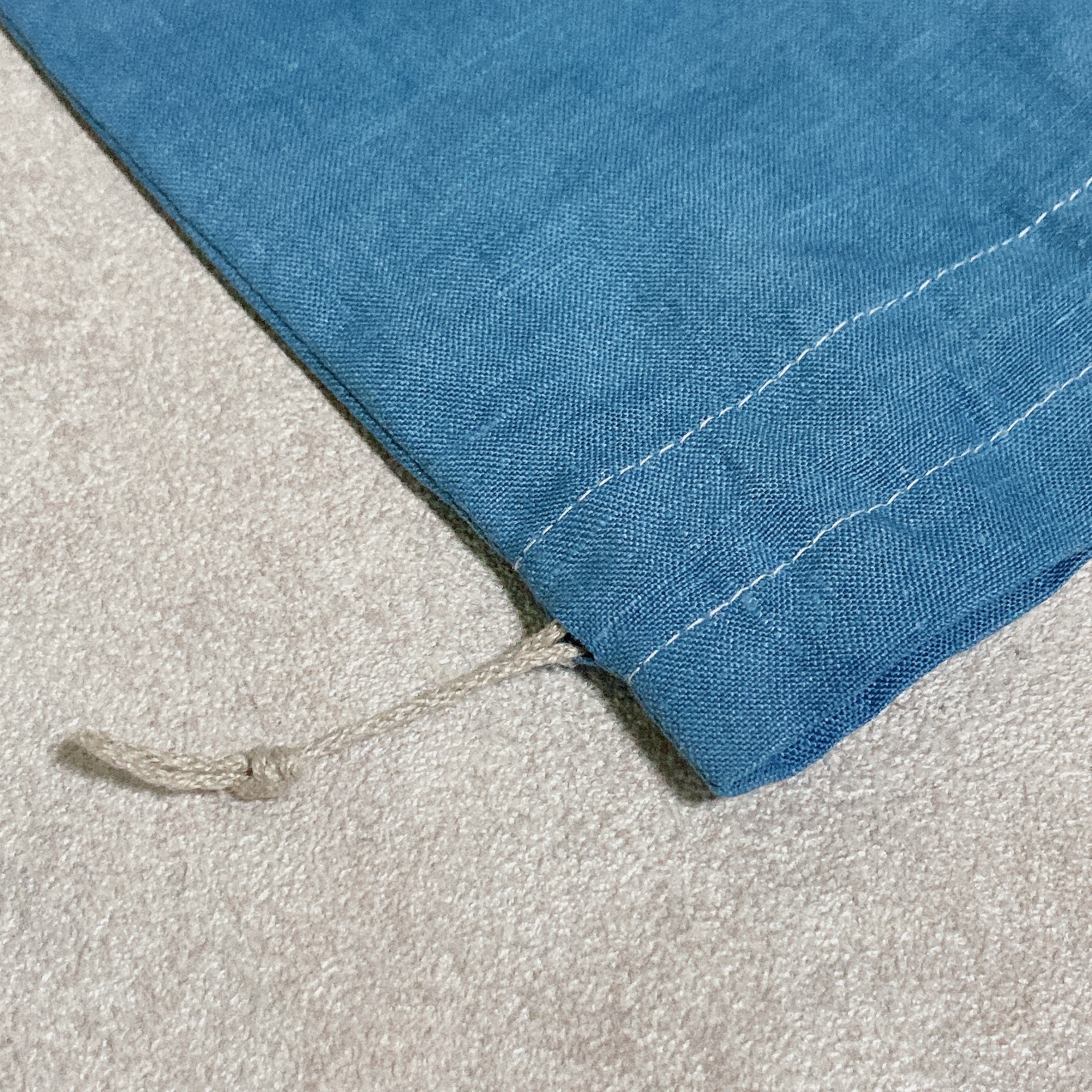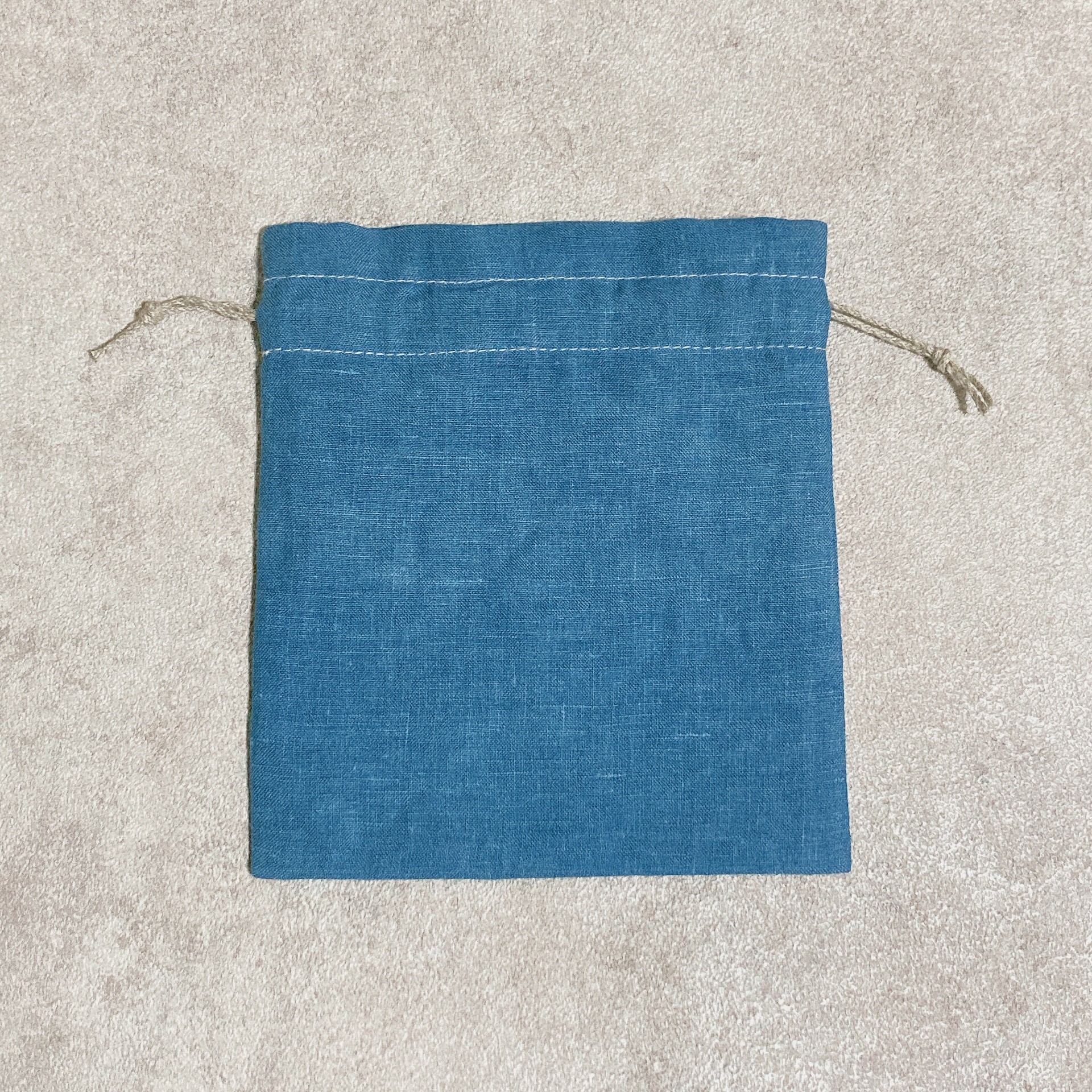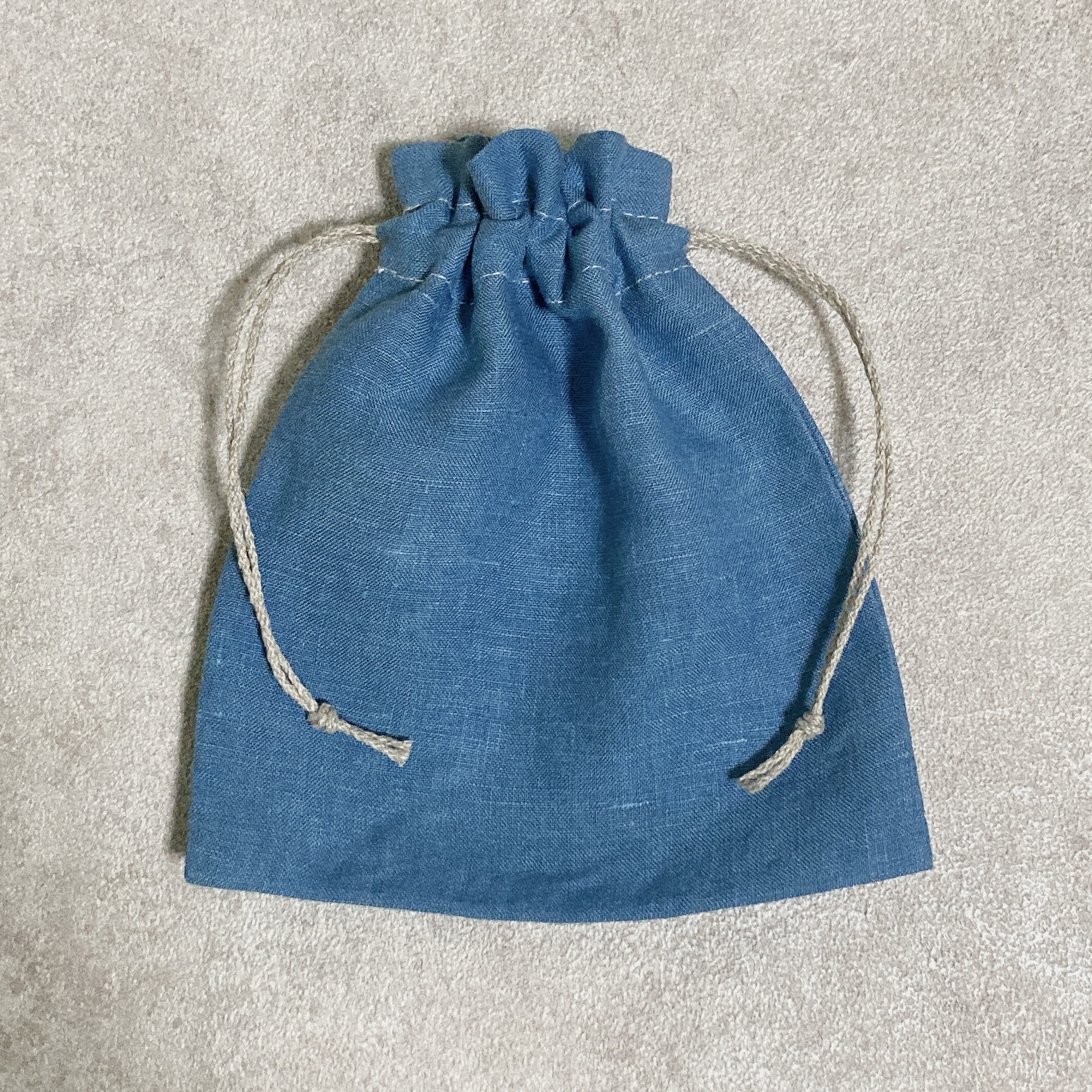 - 巾着 ポーチ 麻 100% 小物入れ 伊勢志摩 志摩市 ブルー 青 アクセサリーポーチ コスメポーチ ギフト プレゼント 志摩ブルーのリネン巾着ポーチ