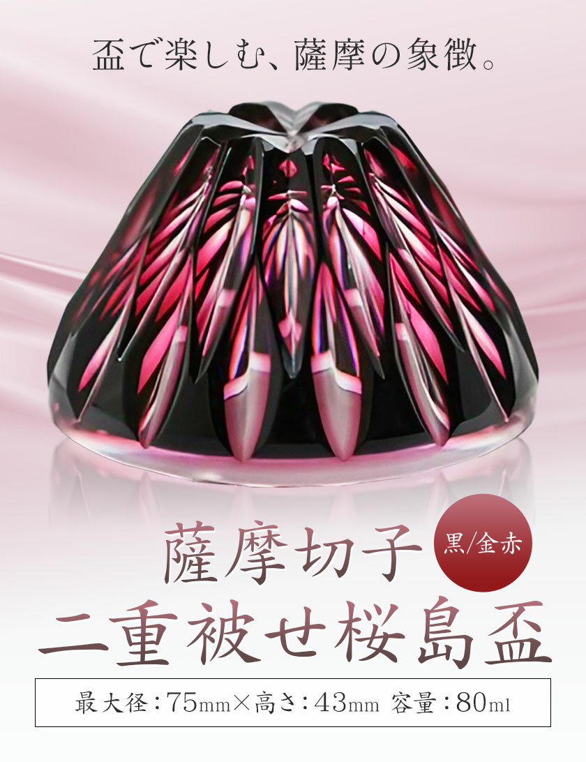 - 【ふるさと納税】薩摩切子 二重被せ 桜島盃 グラス ガラス 最大径75mm×高さ43mm 容量80ml 黒/金赤 薩摩びーどろ工芸株式会社《90日以内に出荷予定(土日祝除く)》鹿児島県 さつま町 送料無料 伝統工芸品 切子 コップ 食器