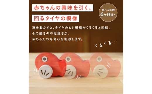 めでタイくるま 玩具 知育玩具 赤ちゃん おもちゃ 車 動く 回る ハイハイ 出産祝い お誕生日 こどもの日 ヒノキ 安全安心 縁起物 木製 国産 プレゼント 贈答 ギフト 福岡県 八女市