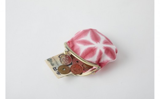 - 有松・鳴海絞り がま口小銭入れ(ピンク)-雪花絞り-【藍染が風にゆれる日本遺産のまち有松寄附金専用】