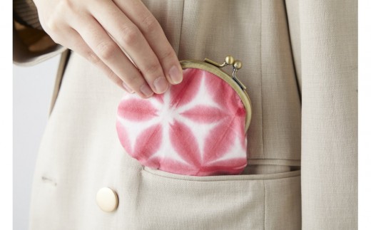有松・鳴海絞り がま口小銭入れ(ピンク)-雪花絞り-【藍染が風にゆれる日本遺産のまち有松寄附金専用】