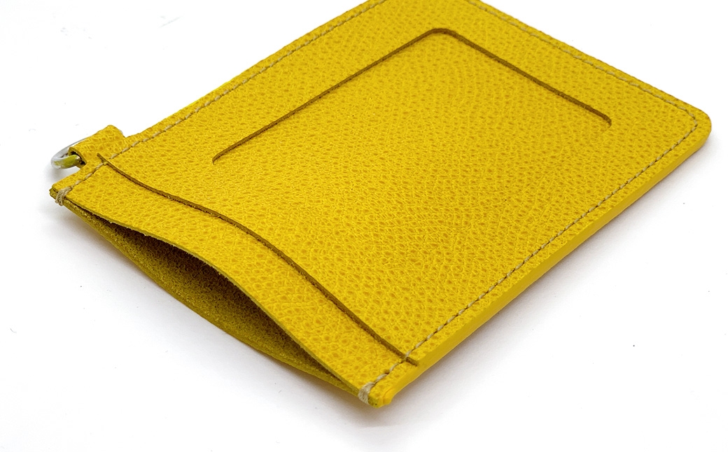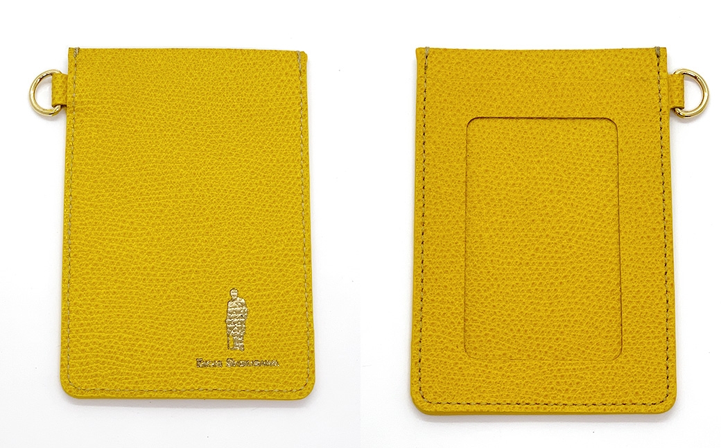 - 渋沢栄一翁 パスケース ( イエロー ) ケース フランス革 小物 牛革 革 革製品 収納 収納品
