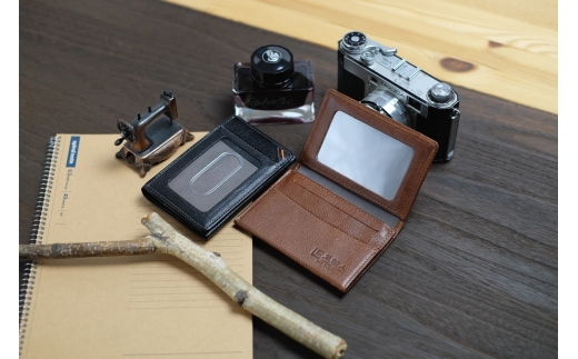 - 小銭が入る多ポケットパスケース キャラメル 牛革 (栃木レザー)|定期入れ 二つ折り メンズ レディース 革 小銭入れ付き カード 名刺 免許証 マイナンバーカード 革財布 本革 レザー 革職人 デュアルライン [1395]