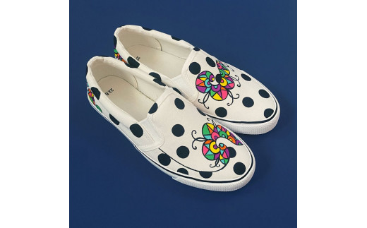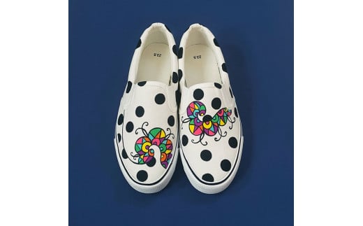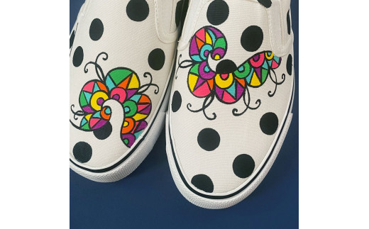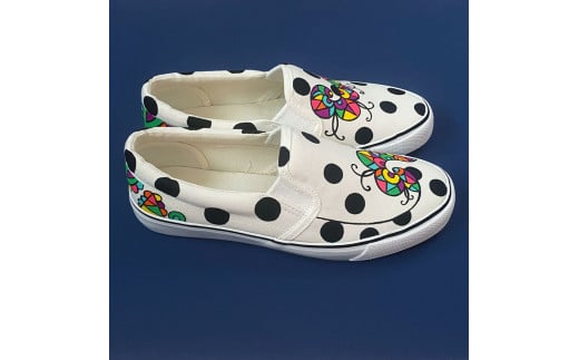 手描きスニーカー「ジャズ0」28.0cm 水玉模様 アシンメトリー【受注制作】