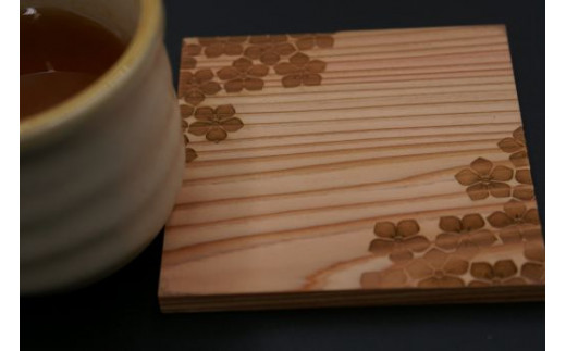 木製桔梗紋コースター (縦9cm×横9cm×厚1cm・2枚セット)【fc-ZG041】【天法株式会社】