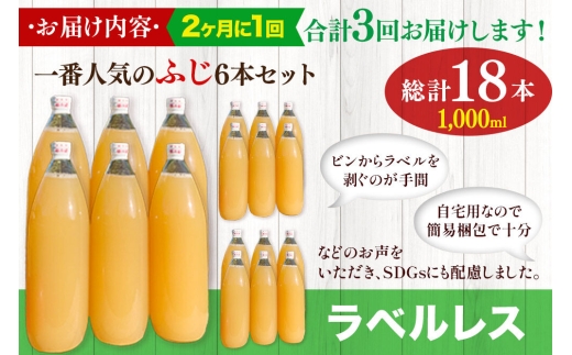 - 《2ヶ月ごとに3回お届け》りんごジュース ふじ 1L×6本 計6L【小さなSDGs ラベルレス】無添加 ストレート果汁100%! 青森県特別栽培農産物認証農園 [アップル おいしい ジュース ストレート ふじ フルーツジュース りんご 飲料 果実 果汁 果汁100% 果物 赤色 美味 林檎]