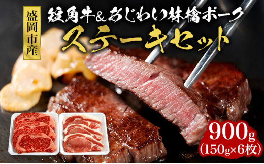 もりおか短角牛 もりおかあじわい林檎ポーク 牛肉 豚肉 ステーキ肉 900g 150g×6枚 国産牛 国産豚 短角牛 国産牛肉 国産豚肉 牛ステーキ アウトドア キャンプ BBQ キャンプ飯 セット 岩手県 盛岡市 東北 岩手 盛岡 九戸屋肉店