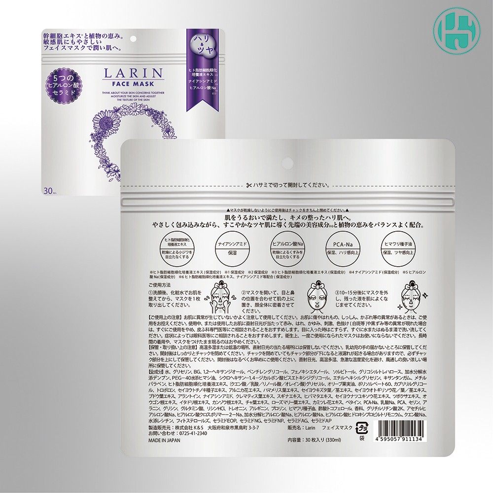 - Larin フェイスマスク 30枚 | ラリン 保湿 ヒアルロン酸 セラミド 乾燥 肌荒れ 敏感肌 うるおい 保湿シート 顔 パック ※離島への配送不可