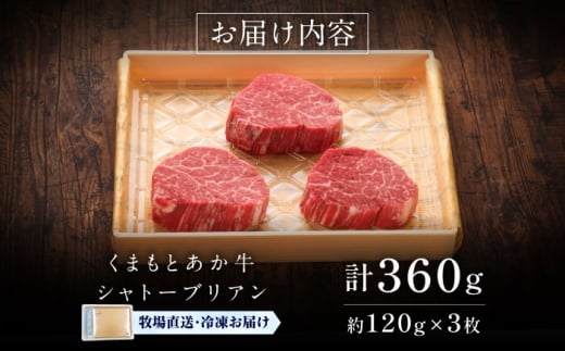 【GI認証】くまもとあか牛シャトーブリアン 約120g×3枚 / 菊陽町 あかうし 熊本県 肉 にく niku ブランド 旨み くまもとあか牛 和牛 阿蘇 自然 自社牧場 直接 最高 上質 牛 牛肉 ぎゅうにく ぎゅう肉 冷凍 贅沢 ご褒美 九州 国産 GI 【有限会社 三協畜産】[BHAS014]